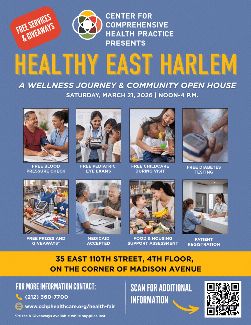 Aquí en CCHP, nos enorgullece servir a East Harlem y a las comunidades cercanas como el hogar de salud de su familia para toda la vida. 🏡